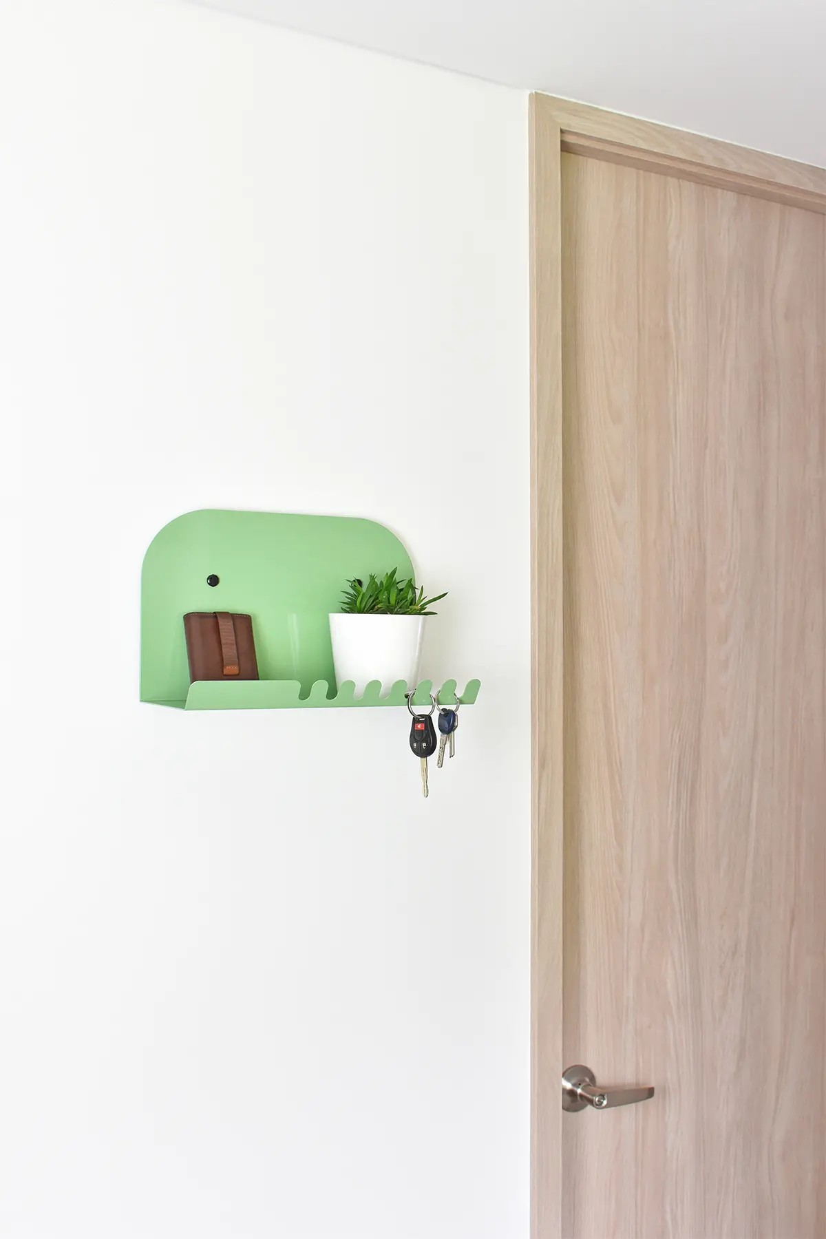 Fabricado en materiales de alta calidad, este recibidor es duradero, robusto y resistente al paso del tiempo. Instalarlo es sencillo y rápido, se ancla a pared con 2 tornillos con sus respectivos taquetes plásticos (kit de anclaje incluido). Su mantenimiento es mínimo; simplemente límpialo con un paño ligeramente húmedo para mantener su brillo y atractivo durante años.